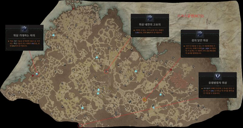 | 스코스글렌(ACT2) | 네크 | 불어나는 저주 | 뼈 영혼이 주는 피해가 이동 거리에 따라 증가하여 최대 00% 까지 증가합니다. |